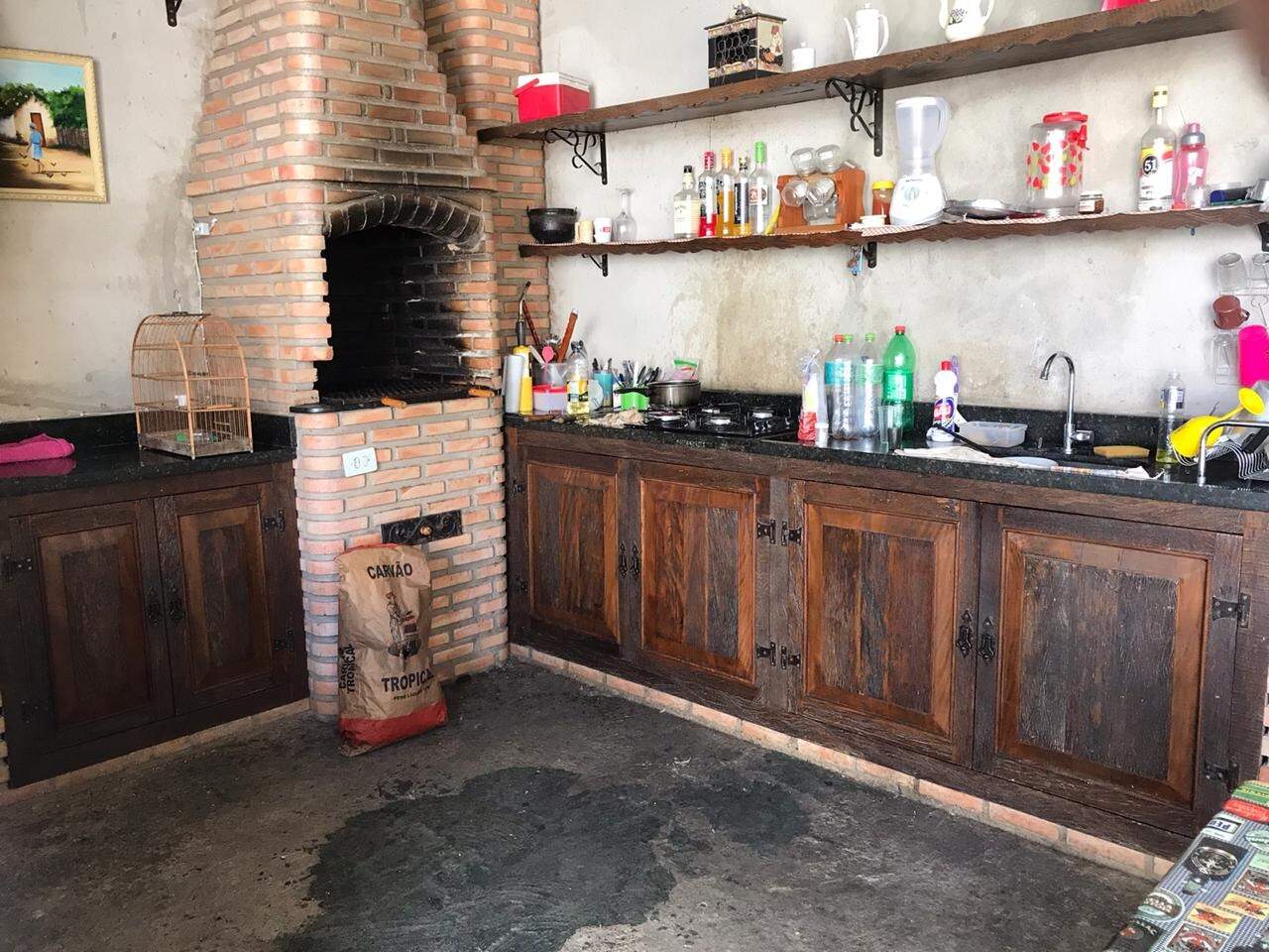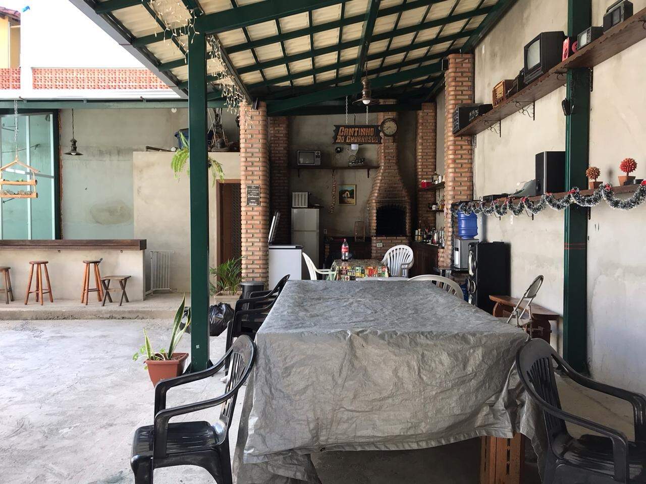 Área de churrasqueira, contando com um banheiro social, área externa.